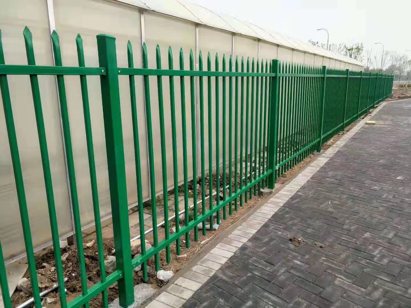 雙橫杠鐵藝護欄是新型靜電噴涂柵欄的其中一款。根據(jù)柵欄的材質(zhì)可以叫做鐵藝護欄、靜電噴涂金屬護欄、鋼管護欄、方管組裝圍欄等。組裝護欄的用途廣泛,被大量應用。因其安全性高、自潔性好、防腐能力強、使用年限長等優(yōu)點多被用于各縣市新建的工業(yè)園周圍作為圍墻。小區(qū)建設和其他建筑上也都被廣泛應用。組裝護欄是熱鍍鋅管經(jīng)過各種沖壓,然后表面磷化處理,最后進行靜電噴涂顏色。靜電噴涂處理的顏色光亮,增加了柵欄本身的美觀性。